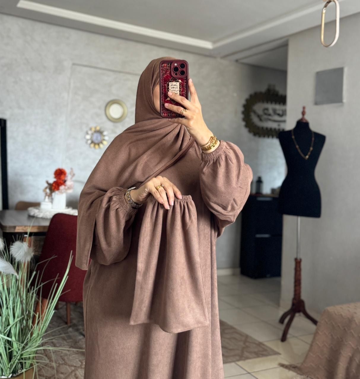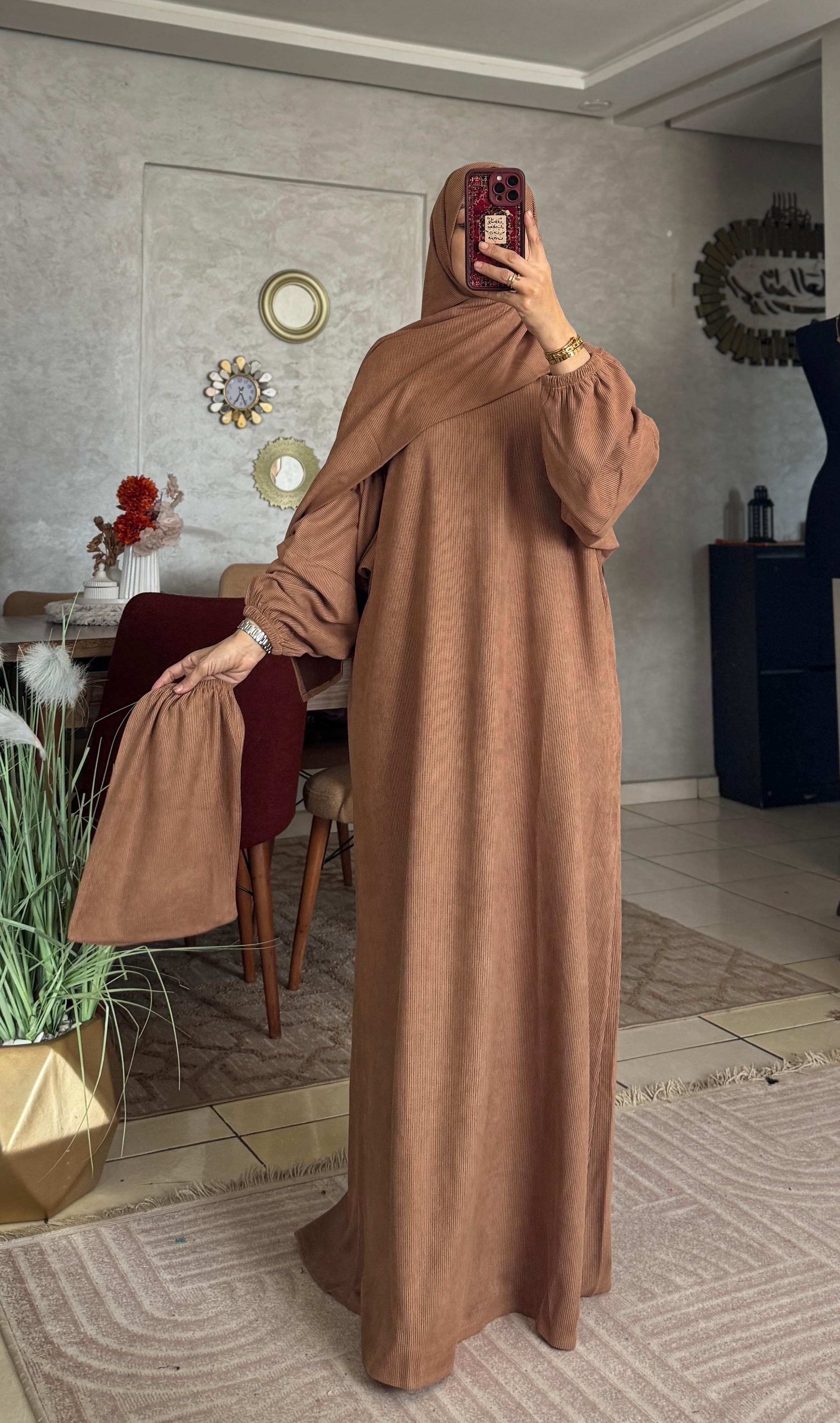✨ عباية الصلاة بتوب القطيفة – دفء وأناقة في كل صلاة ✨
