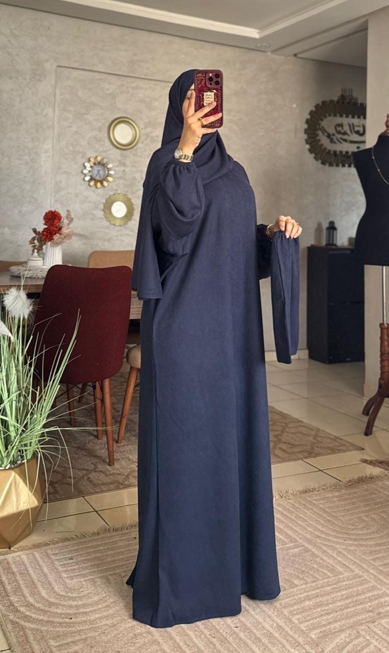 تمتعي براحة استثنائية وأناقة راقية مع عباية صلاة مصنوعة من توب القطيفة الناعم، مثالية للأجواء الباردة 🌿