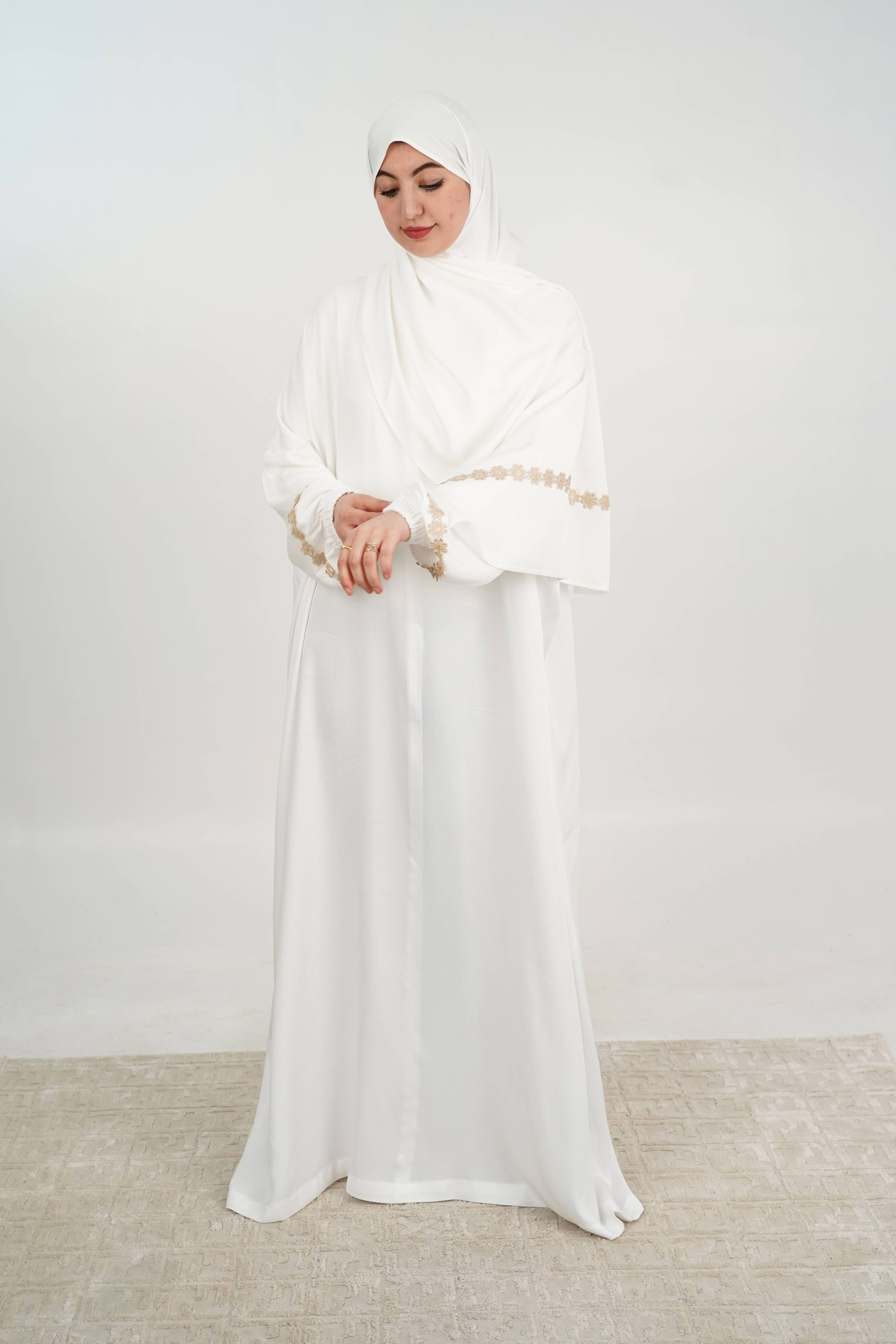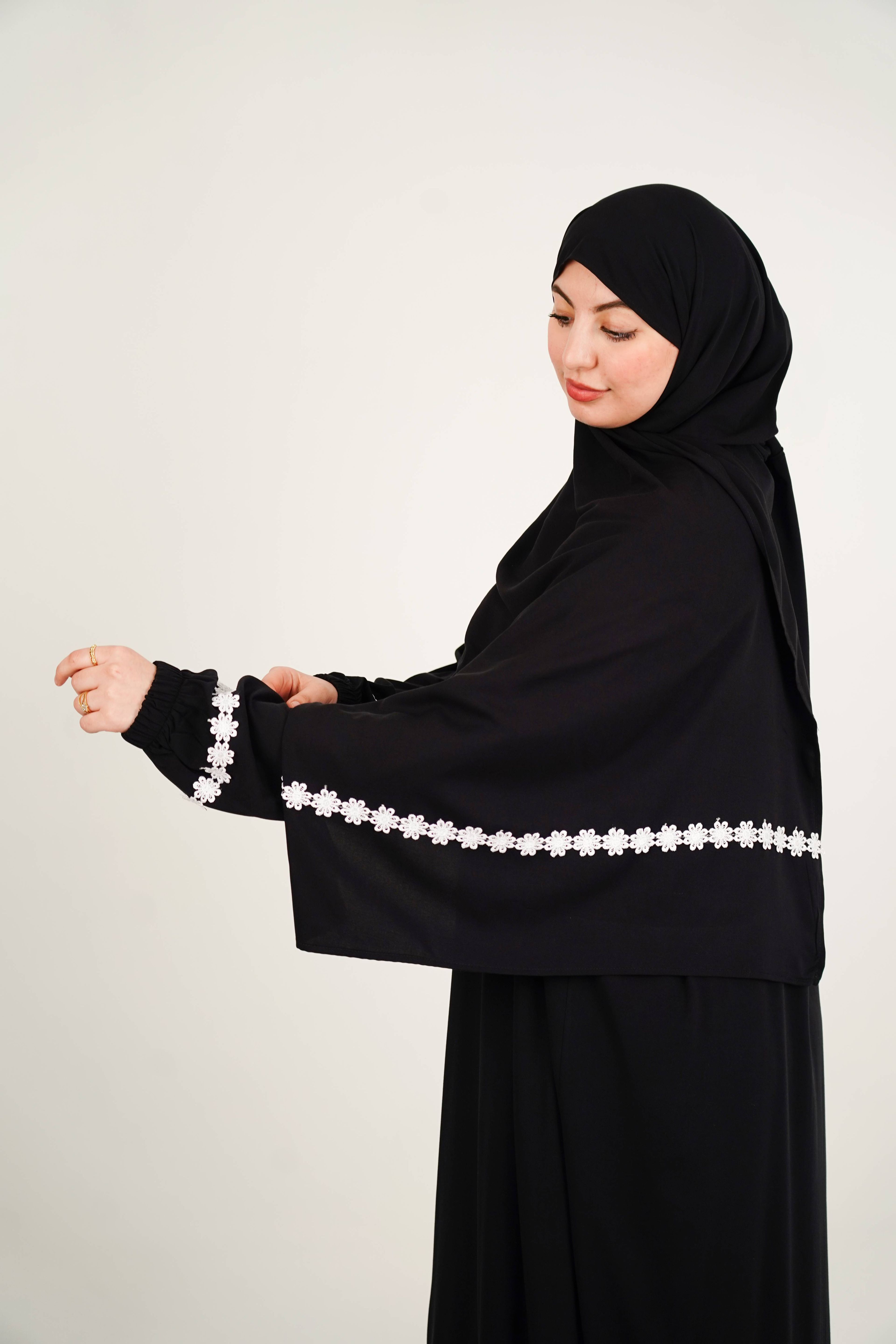 Cette Abaya incarne le raffinement moderne grâce à sa coupe ample et à son tombé fluide. Confectionnée en Tencel, elle offre une silhouette noble et confortable, avec des finitions florales délicates qui ajoutent une touche d'élégance, idéale pour toutes les occasions.